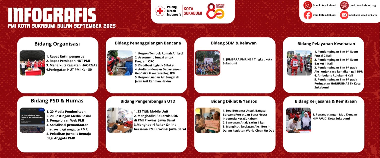 “Dalam pelayanan medis ini, PMI juga berkoordinasi dengan tim medis Dinas Kesehatan (Dinkes) Kota Sukabumi yang bertugas di lokasi,” imbuhnya.