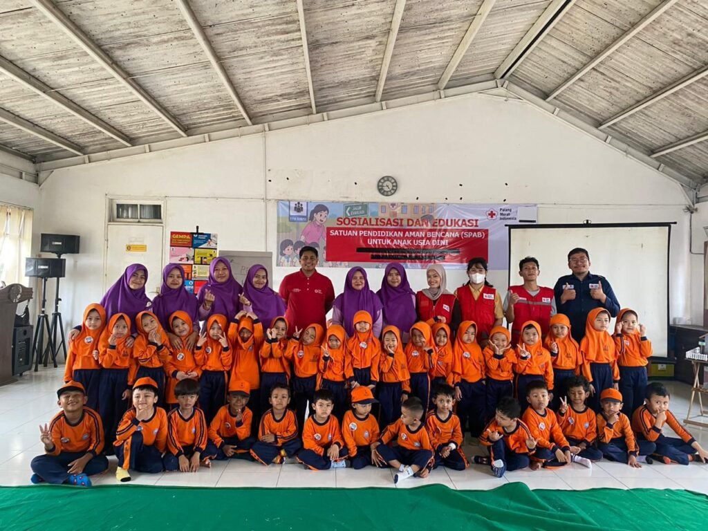 KOTA SUKABUMI- Suasana ceria terlihat sejak pagi ketika puluhan murid Raudhatul Athfal (RA) Zahara Kota Sukabumi melakukan kunjungan edukasi mengikuti kegiatan Sosialisasi dan Edukasi Satuan Pendidikan Aman Bencana (SPAB) di Markas PMI Kota Sukabumi. Dengan seragam oranye cerah, para siswa tampak antusias semangat dan ceria menyimak materi yang dibawakan para relawan PMI Kota Sukabumi