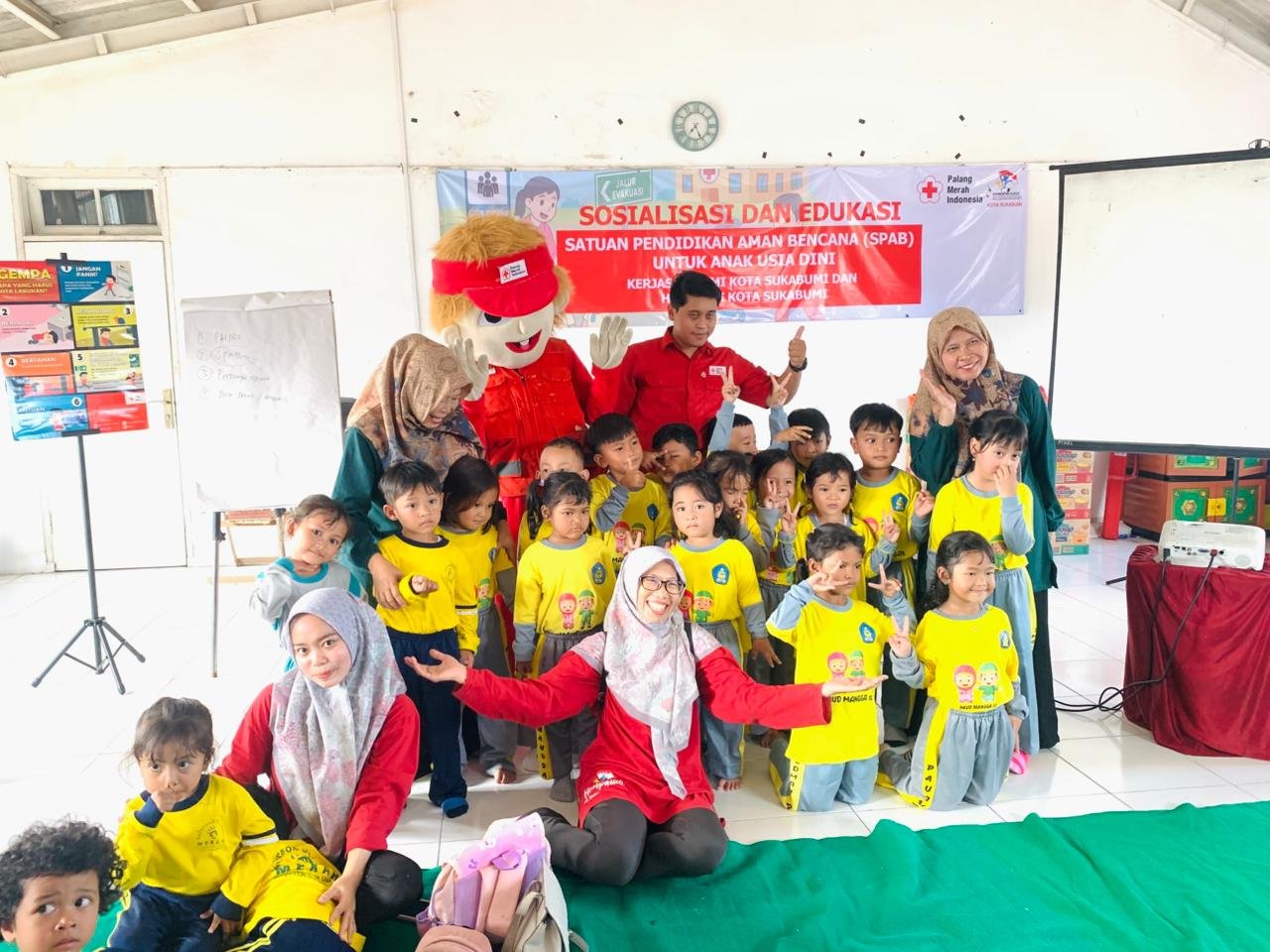 Kegiatan ini merupakan agenda rutin yang dilaksanakan setiap miggunya terselenggara atas kerja sama PMI Kota Sukabumi dengan Himpunan Pendidik dan Tenaga Kependidikan Anak Usia Dini Indonesia (HIMPAUDI) Kota Sukabumi sebagai upaya mengenalkan kesiapsiagaan bencana sejak usia dini.